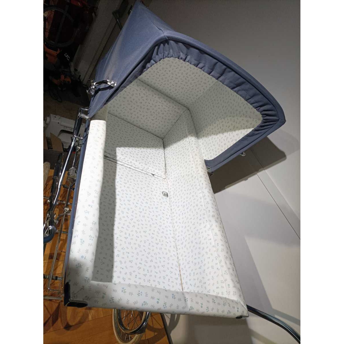 The gorgeous shape and detailing are matched by the famous Silver Cross ride, a wonderful bouncing glide created by the patented C-spring chassis and with the classic Kensington suspension. It has the original bedding, waterproof topping and mosquito nets but some/all of these would need replacing.
