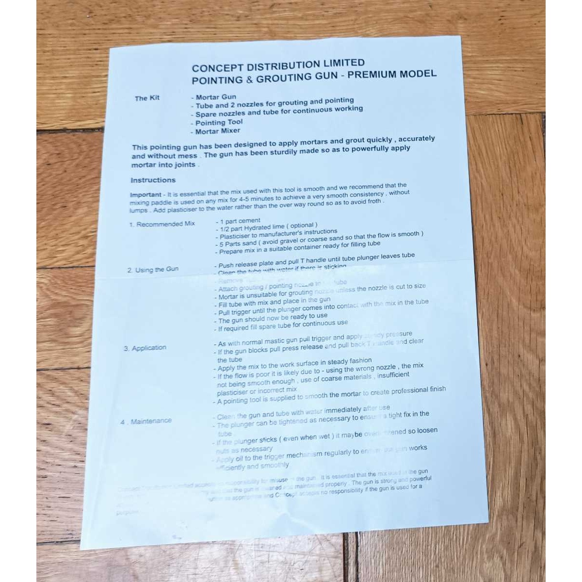 The pointing gun's design specifically helps with applying mortars and grout quickly and accurately without any massive amounts of mess. The gun has been sturdily made to powerfully apply mortar into joints. It's essential that the cement mix used with this tool is smooth to avoid jamming.
