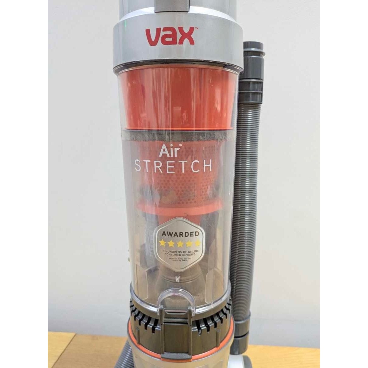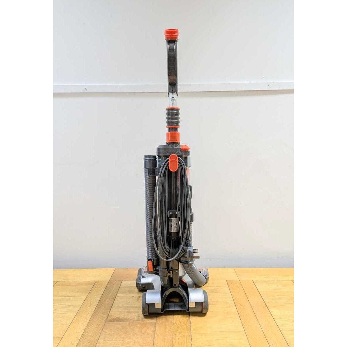 Bagless upright vacuum cleaner. 13m power cord and 3.6m hose. 1.5L capacity. Weighs 5kg. Suitable for carpets, hard floors, upholstery and stairs. The vacuum has a hose but is missing the nozzle attachments