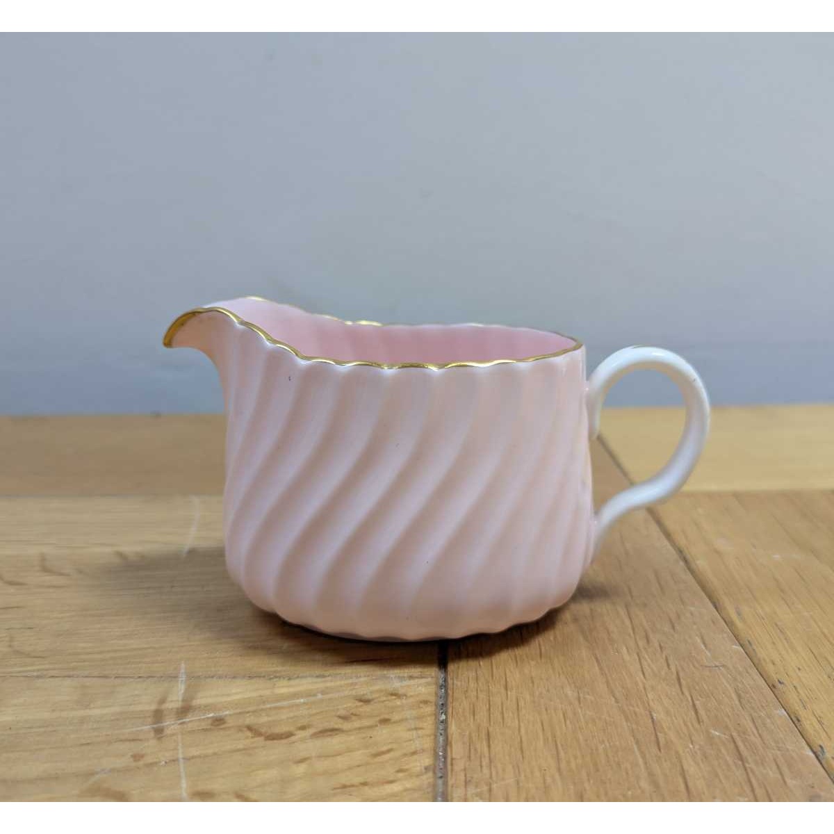 Vintage swirled and fluted Fife shell pink bone china creamer/milk jug and sugar bowl. In excellent condition.