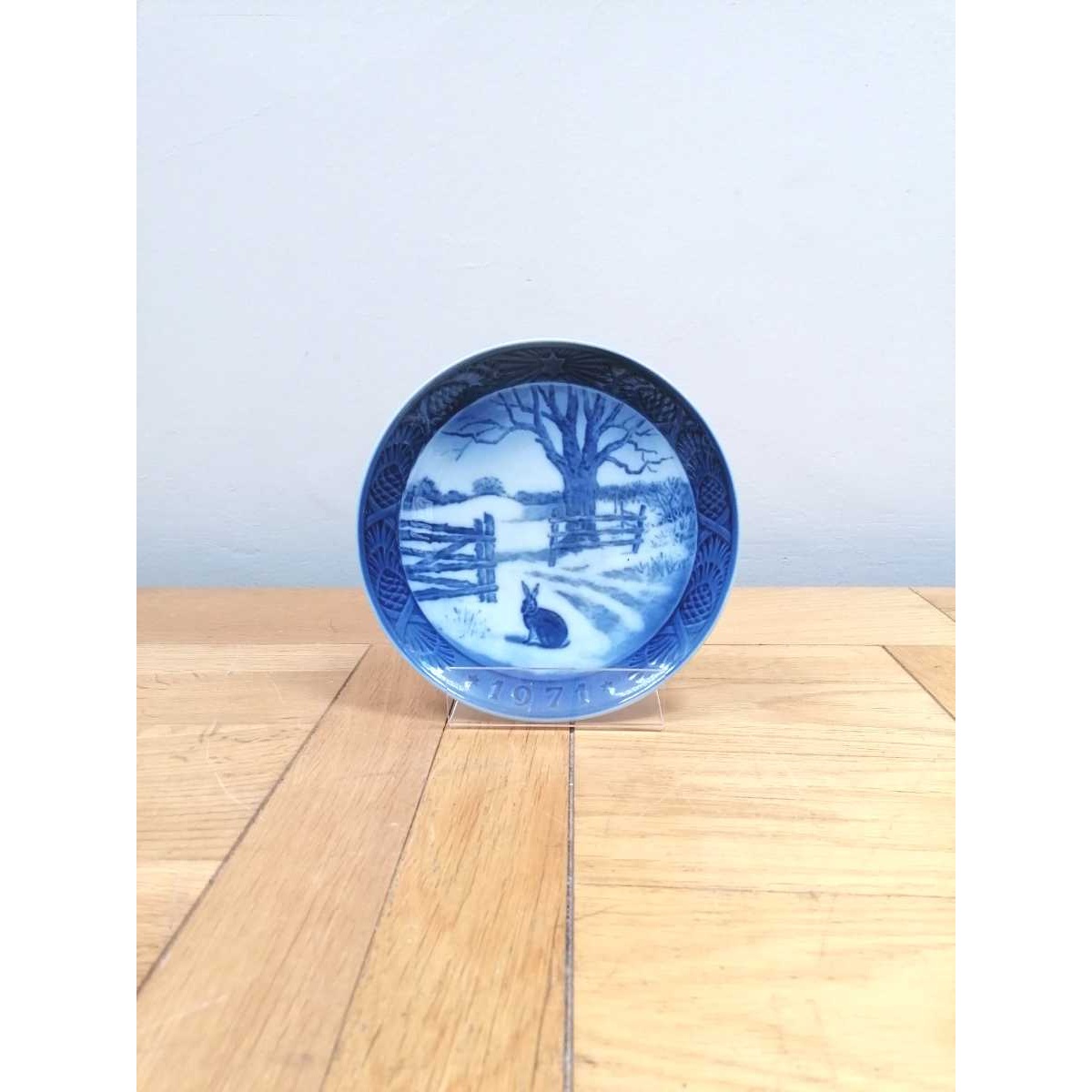 For Sale: Vintage Blue 1971 Royal Copenhagen Christmas Plate, 'Hare in Winter's.