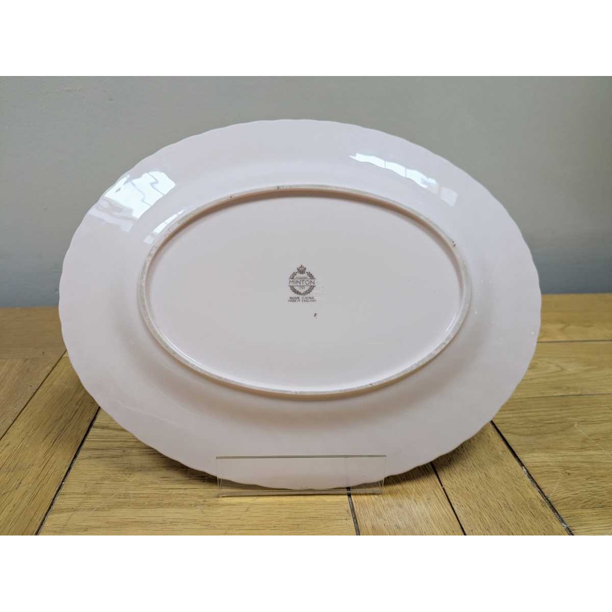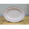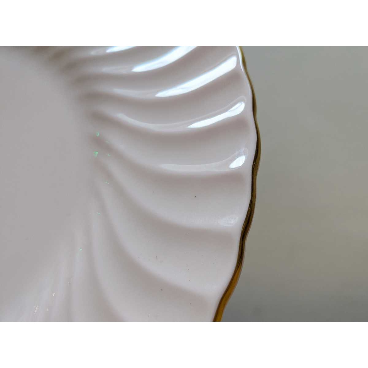 Vintage swirled and fluted fife shell pink bone china oval serving platter with a gold rim.